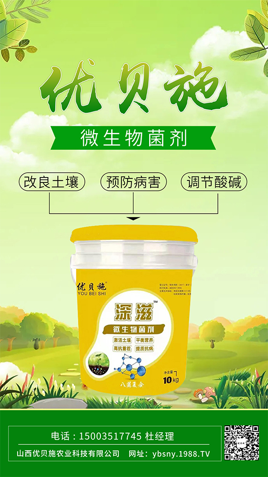 山西優(yōu)貝施農(nóng)業(yè)科技有限公司【微生物菌劑-深滋】主要以枯草芽孢桿菌、地衣芽孢桿菌、巨大芽孢桿菌、鼠李糖乳桿菌、嗜酸乳桿菌、酵母菌、糞腸球菌、光合細(xì)菌、八種復(fù)合的(好氧+厭氧)菌群復(fù)合發(fā)酵而成,使用后可以增強(qiáng)根系的生長,增加根系的數(shù)量(生根快,須根多);提高肥料的利用率;促進(jìn)作物對(duì)有效養(yǎng)分的吸收,增強(qiáng)作物對(duì)養(yǎng)分的運(yùn)輸性;