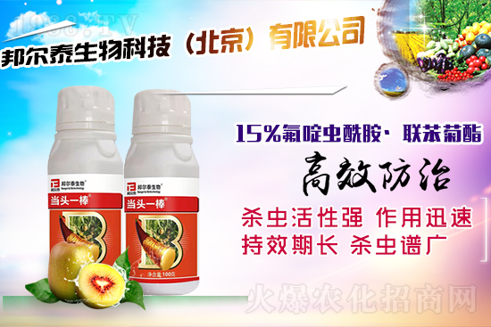 15%氟啶蟲酰胺·聯(lián)苯菊酯-當(dāng)頭一棒-邦爾泰生物 總有效成分含量:15% 有效成分及其含量: 聯(lián)苯菊酯5% 氟啶蟲酰胺10% 劑型:懸浮劑 凈含量:100克