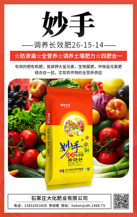妙手調(diào)養(yǎng)長(zhǎng)效肥,多種作物都能用,比同樣含量摻混肥控釋肥價(jià)格低,有賣點(diǎn),利潤(rùn)高,農(nóng)民說(shuō)好,經(jīng)銷商賺錢多的好產(chǎn)品,值得你關(guān)注。