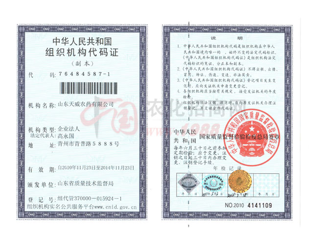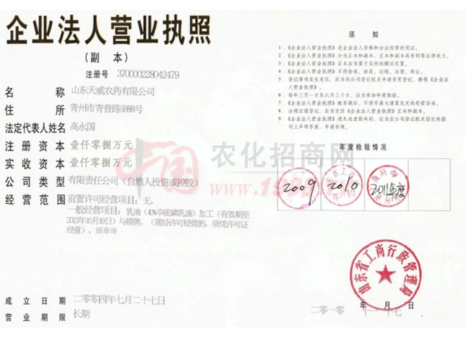 山東天威農(nóng)藥有限公司和青州市奧諾農(nóng)化有限公司是國家發(fā)改委、農(nóng)業(yè)部農(nóng)藥、肥料定點生產(chǎn)企業(yè);是國家農(nóng)業(yè)部農(nóng)藥檢定所農(nóng)藥科學與管理理事單位。