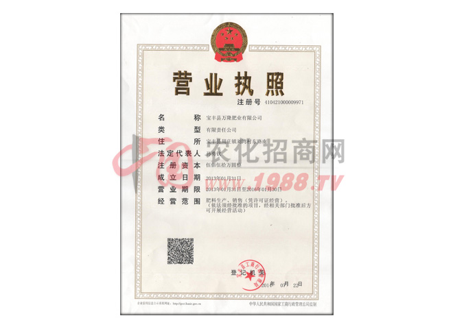 寶豐萬隆肥業(yè)有限公司公司成立于2010年,公司旗下有:沃豐地特優(yōu)速變億克奇倍倍佳瑞品系列和萬隆系列等產(chǎn)品,F(xiàn)有17個登記證件,是一家專業(yè)化、現(xiàn)代化、信息化、一體的農(nóng)業(yè)創(chuàng)新型企業(yè),集科研開發(fā)、生產(chǎn)、銷售服務(wù)為一體的高新技術(shù)企業(yè)。技術(shù)力量雄厚,生產(chǎn)經(jīng)驗豐富,設(shè)備先進,工藝科學(xué)合理。我公司自成立以來堅持自主創(chuàng)新,以科技興農(nóng)為己任,追求以質(zhì)量服務(wù)三農(nóng)的思想,不斷開拓創(chuàng)新,提供優(yōu)質(zhì)產(chǎn)品。在長期與中國農(nóng)科院,沈陽化工研究所,中國農(nóng)大,取得了多項科研成果,以動物蛋白等微生物菌替代傳統(tǒng)葉面肥,研發(fā)了多個新型肥料新品種,生產(chǎn)出高效環(huán)保型肥料,在銷售過程中受到廣泛好評,自此轉(zhuǎn)型成功。我公司將致力于生態(tài)農(nóng)業(yè)及無公害液肥兩大高科領(lǐng)域技產(chǎn)品的研發(fā)和推廣,堅持走生態(tài)農(nóng)業(yè)路線。引導(dǎo)中國農(nóng)業(yè)向綠色、環(huán)保、無激素、循環(huán)利用及高效能方向發(fā)展。真正實現(xiàn)增產(chǎn)增收。
