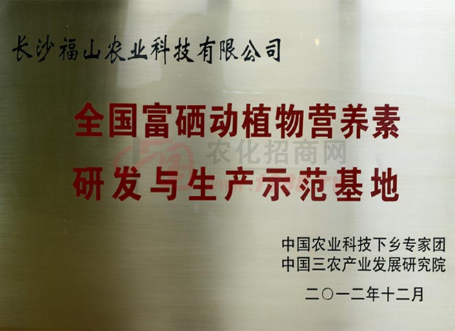 長沙福山農(nóng)業(yè)科技有限公司是國內(nèi)較早從事粉劑富硒葉面肥和富硒保健功能食品開發(fā)的先驅(qū)企業(yè)之一,目前公司共有磷酸硒鉀、腐殖酸硒鈦、生物活性硒元三個發(fā)明專利,已應(yīng)用于國內(nèi)硒開發(fā)多個領(lǐng)域,是集農(nóng)林植物產(chǎn)品的研究、開發(fā)、生產(chǎn)、銷售與服務(wù)為一體的高科技企業(yè)。