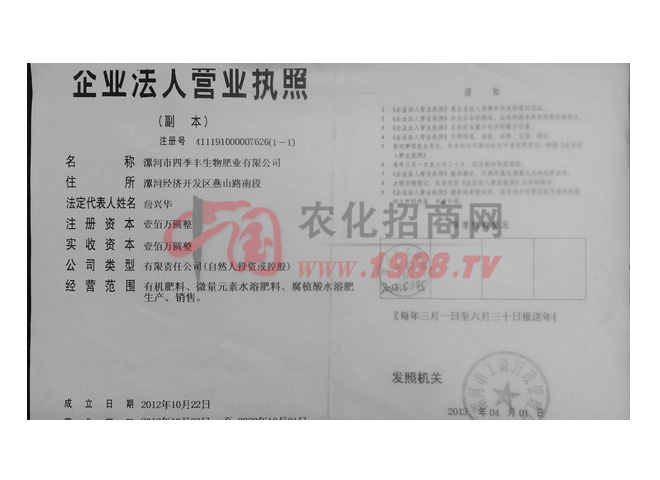 四季豐生物肥業(yè)有限公司 聯(lián)系方式:留言后自動顯示!  點擊留言 申請樣品