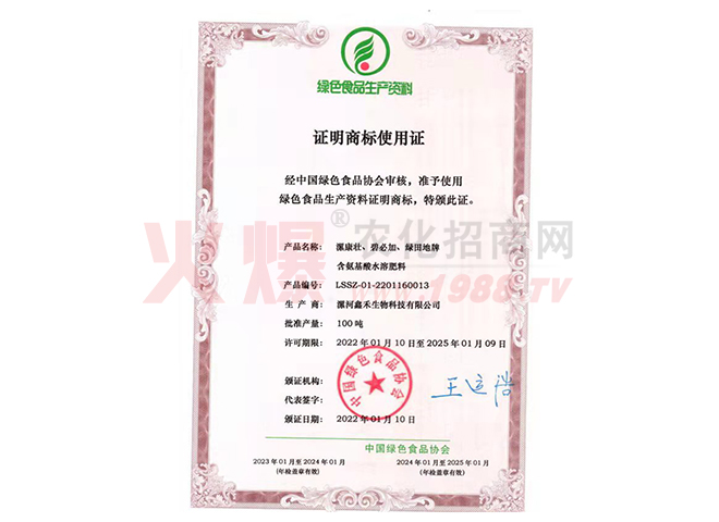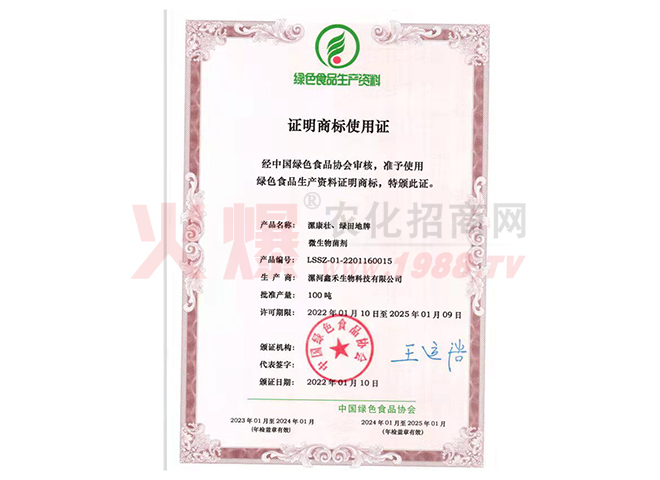 漯河鑫禾生物科技有限公司是農(nóng)業(yè)科技的殿堂,她沉積了待以開發(fā)的物價科技財富,擁有大批的科技人才,公司目前擁有國家肥料登記證十一種,注冊商標五個,發(fā)明專利一項。