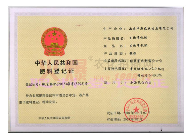 公司先后榮獲“綠色肥料生產(chǎn)基地骨干企業(yè)”、“全國守合同重信用企業(yè)”、“第十五屆山東省消費者滿意單位”、“臨沂市市長質(zhì)量獎”等榮譽稱號。“喚醒”系列微生物菌肥被評為“2017年度中國十佳有機肥”。