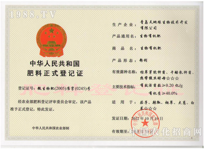 目前主要開發(fā)的系列產(chǎn)品有:“天緣活菌母露Ⅰ型(多種組合配方:有機物料發(fā)酵劑專用菌種)”、“天緣活菌母露Ⅱ型(生物沖施肥、葉面噴施肥)”、“眾和生物有機肥”三大系列十多種產(chǎn)品。對改良土壤、修復(fù)生態(tài)、還原生態(tài)、提高作物品質(zhì)、提高土壤的綜合地力、提高作物產(chǎn)量、降解化學殘留、緩解連作障礙效果顯著。產(chǎn)品于2005年國家正式批準登記。2003年被審定為“青島高新技術(shù)產(chǎn)品”和“青島市高科技企業(yè)”。