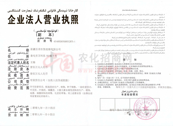 公司目前主要經(jīng)營農(nóng)藥、種子及肥料的生產(chǎn)和流通,以農(nóng)資連鎖經(jīng)營為基礎(chǔ),積極推進集團化運作,通過不斷創(chuàng)新的管理模式,優(yōu)質(zhì)的產(chǎn)品售后服務(wù),高效的農(nóng)業(yè)技術(shù)指導(dǎo),來實現(xiàn)規(guī)模化效益。公司大力實施向上游資源和終端市場“兩頭延伸”的發(fā)展戰(zhàn)略。不斷走自主創(chuàng)業(yè)和聯(lián)合開發(fā)之路,先后與疆內(nèi)高等院校,農(nóng)科所和疆內(nèi)外企業(yè)形成技術(shù)合作伙伴。公司所生產(chǎn)的肥料均采用進口和國產(chǎn)優(yōu)質(zhì)原料,順應(yīng)了當(dāng)今日益發(fā)展的節(jié)水灌溉技術(shù)的需要,產(chǎn)品經(jīng)過科學(xué)的田間作物實驗,依據(jù)測土配方、平衡施肥的技術(shù)理念,按照作物需肥規(guī)律精心研制而成。產(chǎn)品具有結(jié)構(gòu)合理、利用率高、質(zhì)量穩(wěn)定、肥效等特點。自產(chǎn)品投放市場以來,一直深受廣大農(nóng)民朋友的青睞。誠實守信,腳踏實地的經(jīng)營作風(fēng)在廣大客戶中樹立了良好的口碑。